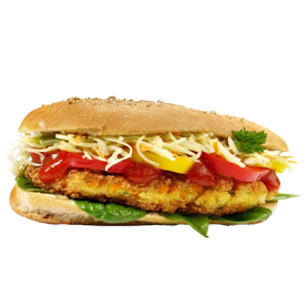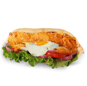 Pain au choix, 3 boulettes de falafel, cheddar, crudités, cornichons.