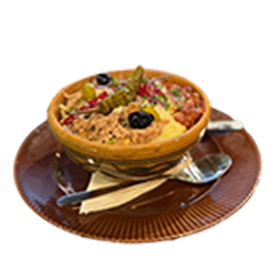 Thon, oeuf, harissa maison, huile d'olive.