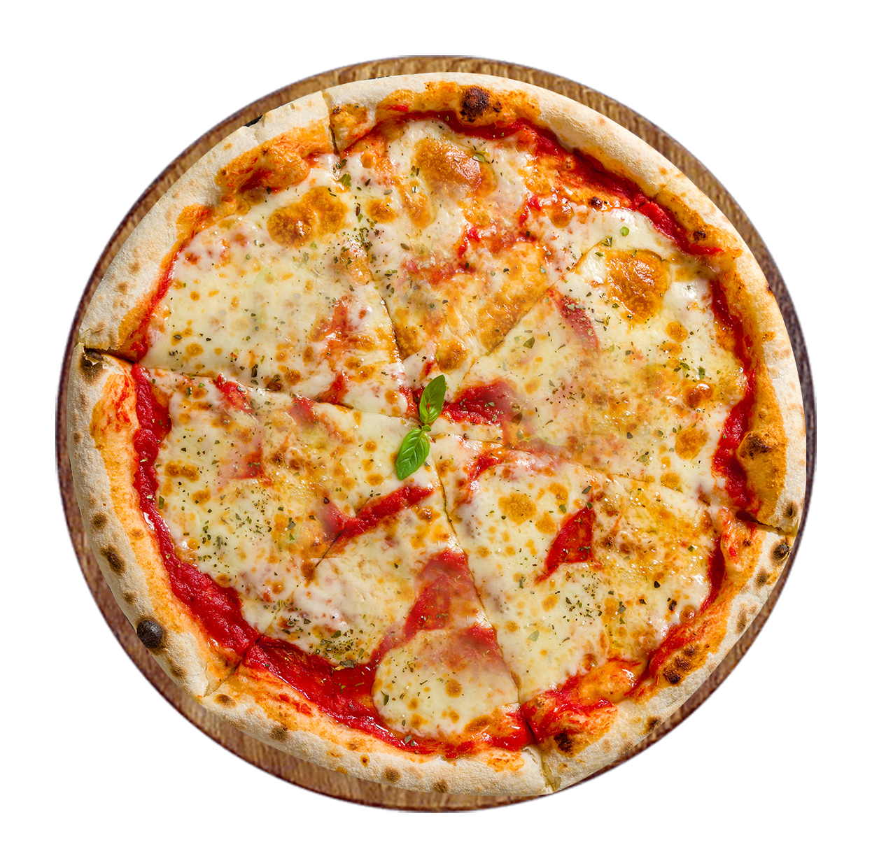 Tomate, fromage, jambon*, lardons*, chorizo*, bacon*.