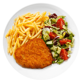 Salade, tomates, oignons, olives, vinaigrette. + 2 Viandes au choix.