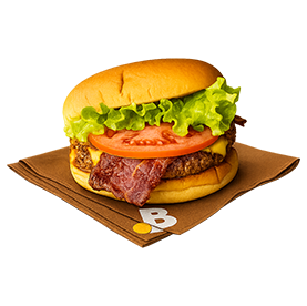 Smashed beef, cheddar, bacon, salade, tomates, oignons, cornichons, sauce maison.