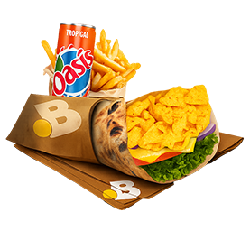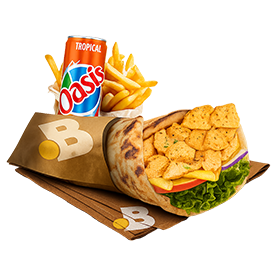 Poulet mariné saveurs mexicaines aux 6 épices, salade, tomates, oignons, cheddar.