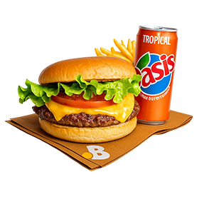 Smashed beef, cheddar, salade, tomates, oignons, cornichons, sauce maison.