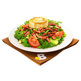 Salade verte, tomates, chèvre, croûtons, mozzarella Servie avec pain et boisson 33cl au choix.