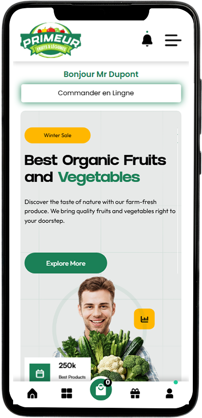 Nous vous proposons des produits de qualité premium, soigneusement sélectionnés pour leur fraîcheur, leur goût et leur valeur nutritive. Chaque fruit et légume est choisi pour vous offrir le meilleur, afin que vous puissiez savourer des aliments sains et délicieux à chaque repas.