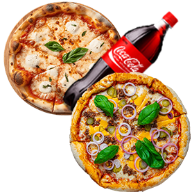 2 Pizzas Familiale au choix + 1 Maxi coca cola.