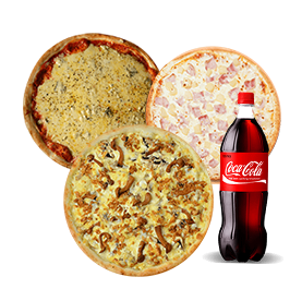 3 Pizzas Familiale au choix + 1 Maxi coca cola.