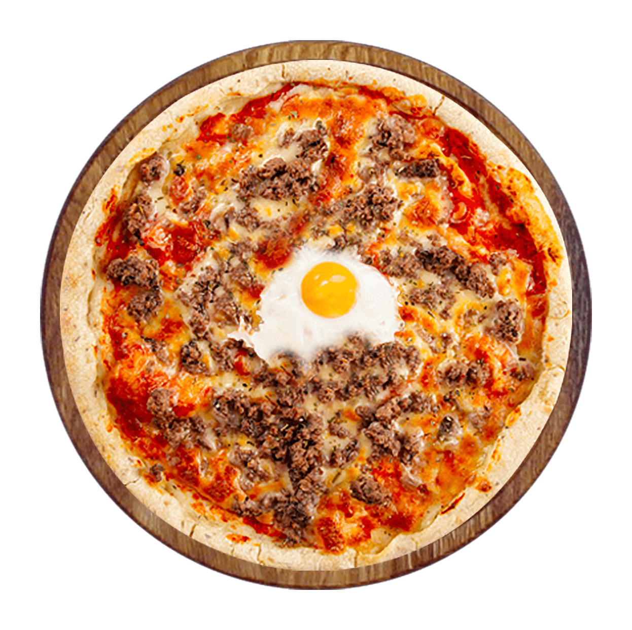 Crème fraîche, fromage, bacon, viande hachée, oeuf, cheddar.