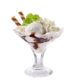 1 Boule vanille, 1 boule fraise, 1 boule pistache, chantilly.