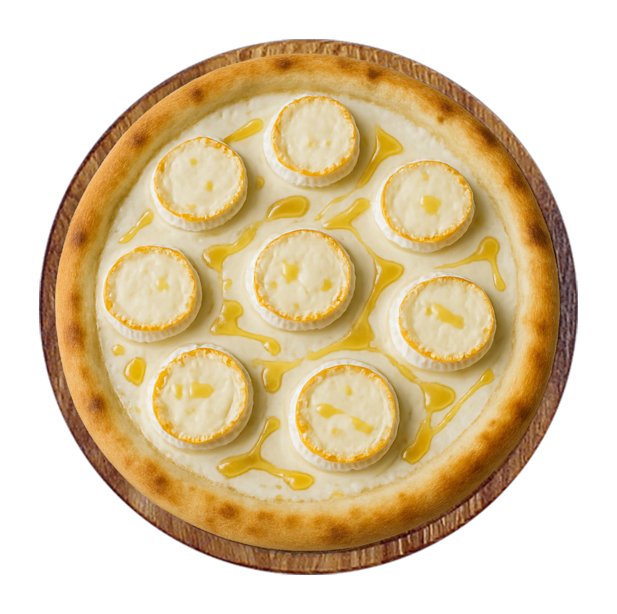 Crème fraîche, merguez, oignons frits, jambon, reblochon.