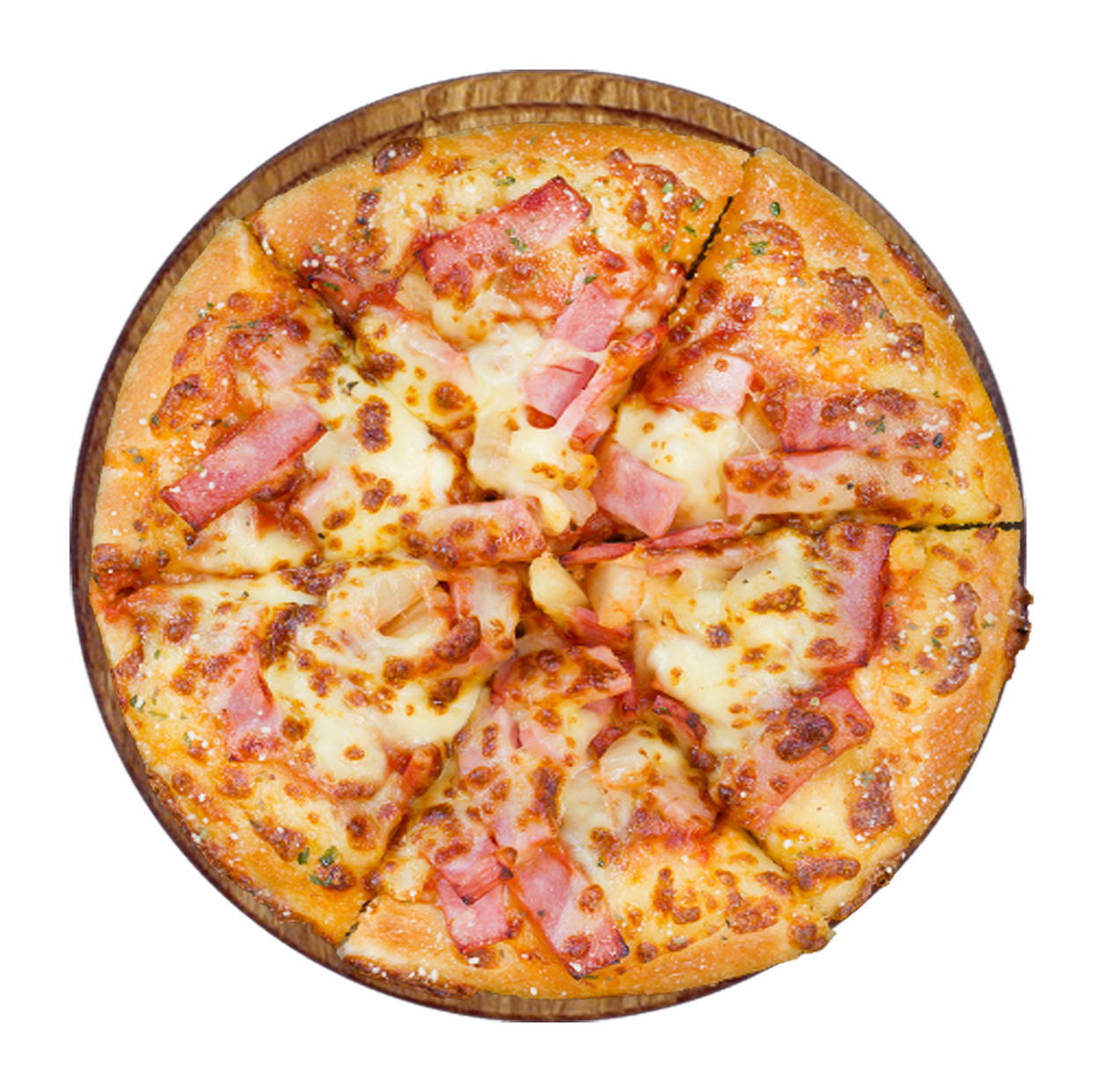 Tomate, fromage, lardons, jambon, viande hachée, merguez.
