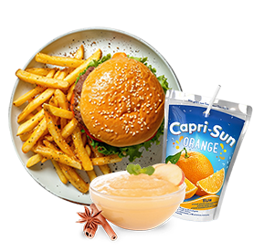 1 Cheese burger + Frites + Compote + Capri Sun.