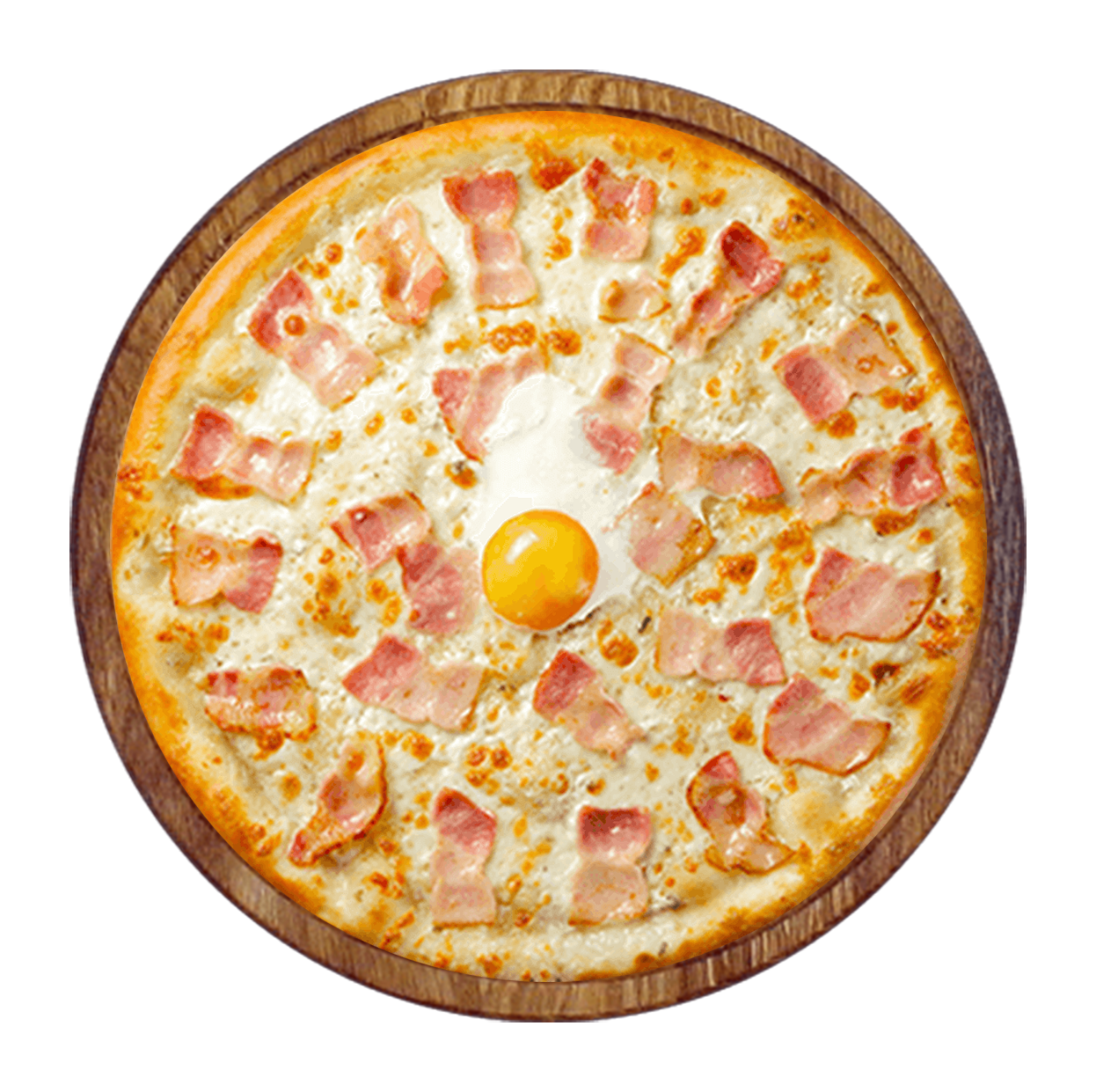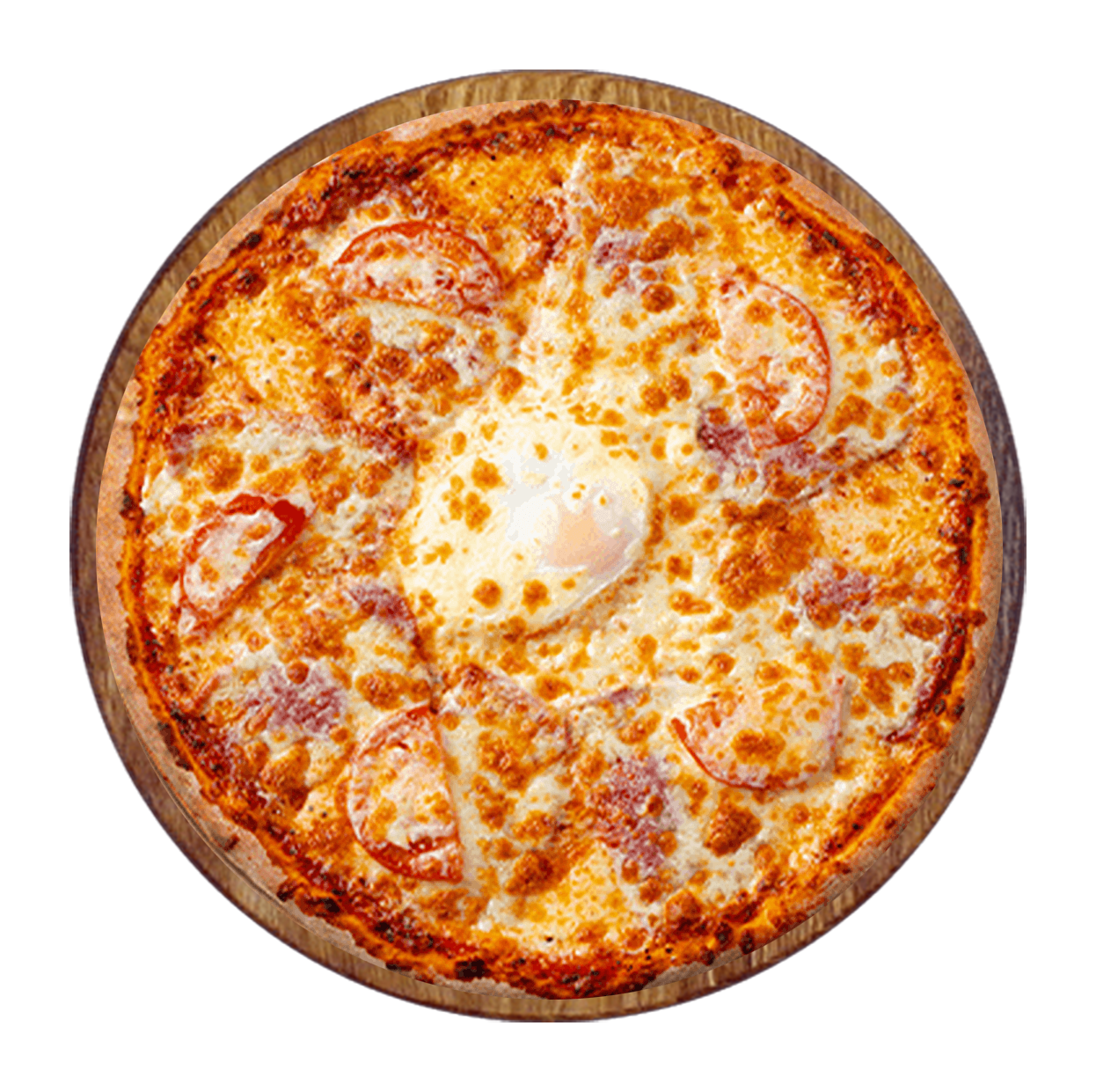 Tomate, fromage, bâtonnets de lardons, oeuf.