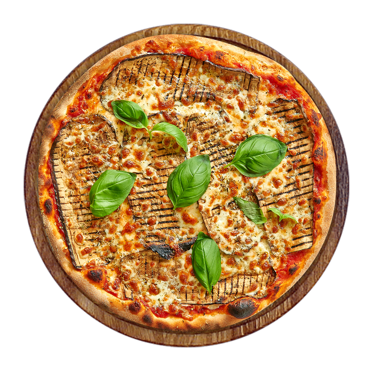 Tomate, fromage, champignons, poivrons, aubergines, artichauts, tomates fraîches.