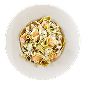 Pâtes fraîches nappées d'une sauce crémeuse au saumon.