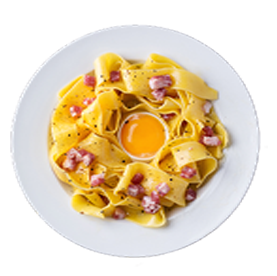 Recette traditionnelle italienne, sauce onctueuse aux œufs, crème et lardons.
