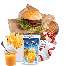 Cheese Burger + Frites + Compote + Capri-Sun + Surprise.