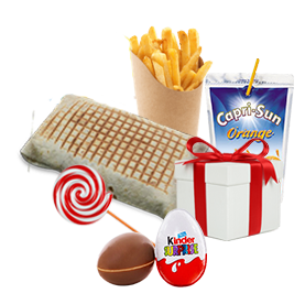 Petite viande + Frites + Capri sun + Kinder + Jouet + Sucette.