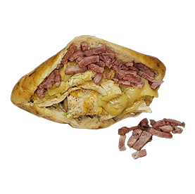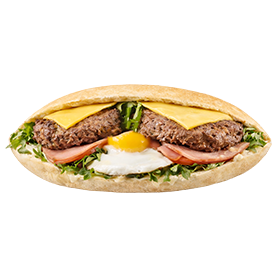 2 Steaks 45g, jambon, oeuf, cheddar.