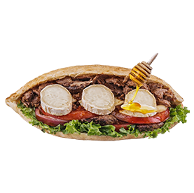 Kebab, chèvre, miel. + 1 euro de plus pour frites.