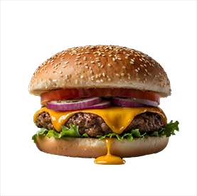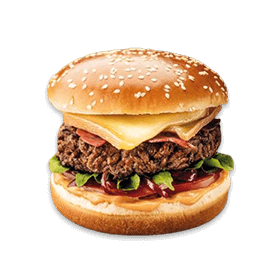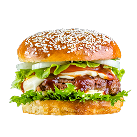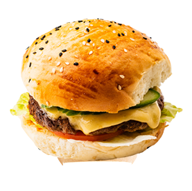 Pain brioché, steak 120g, fromage raclette, crudités.