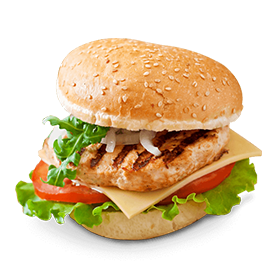 Filet de poulet, cheddar, crudités.