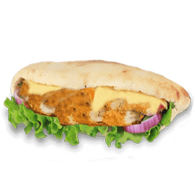 Poulet tandoori, cheddar, crudités.