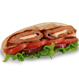 Escalope de poulet, cheddar, crudités.