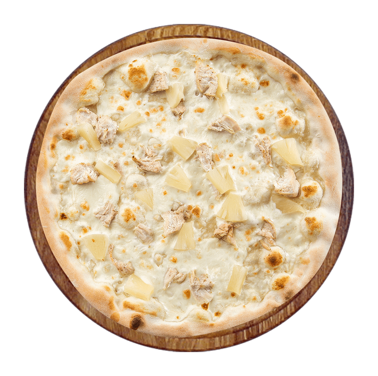 Crème fraîche, double fromage, poulet, pommes de terre, oignons, cheddar.