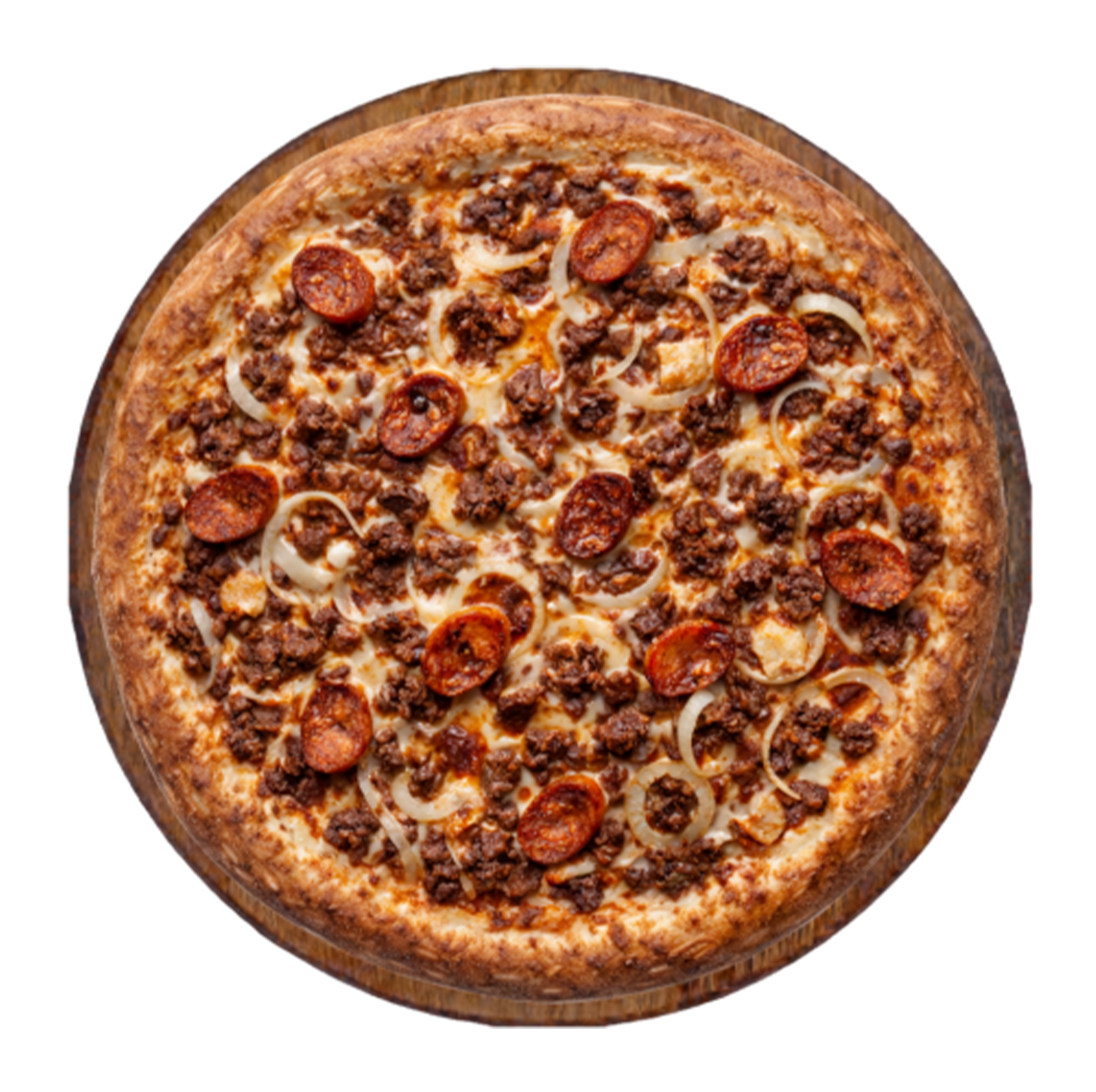 Sauce BBQ, double fromage, viande hachée, chorizo, oignons.