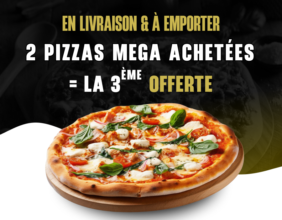 Sauce tomate, double fromage, jambon, lardons, viande hachée.