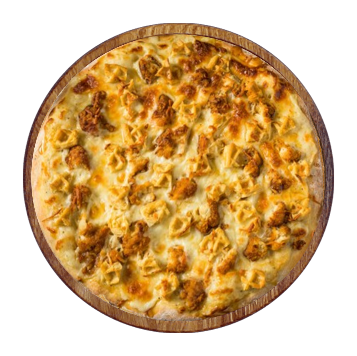 Sauce tomate, double fromage, tenders, oignons crispy, sauce tasty.