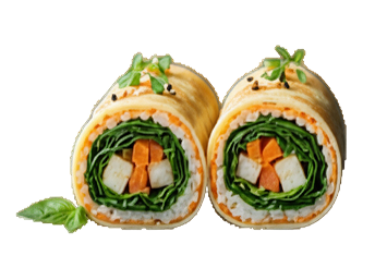 Tempura asparagus, sweet potato, topped with a vocado scales and…